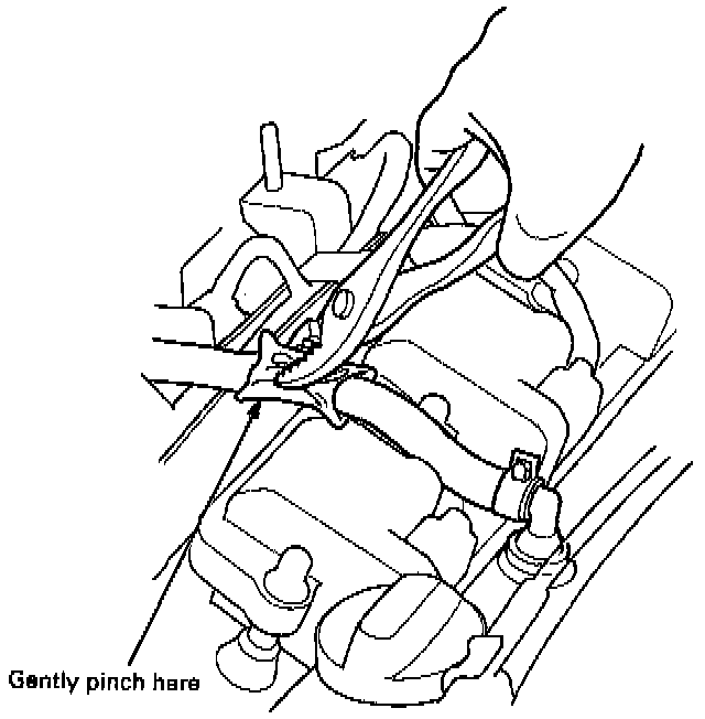 2. At idle, make sure there is a clicking sound from the PCV valve when the hose between the PCV valve and intake manifold is lightly pinched with your fingers or pliers.