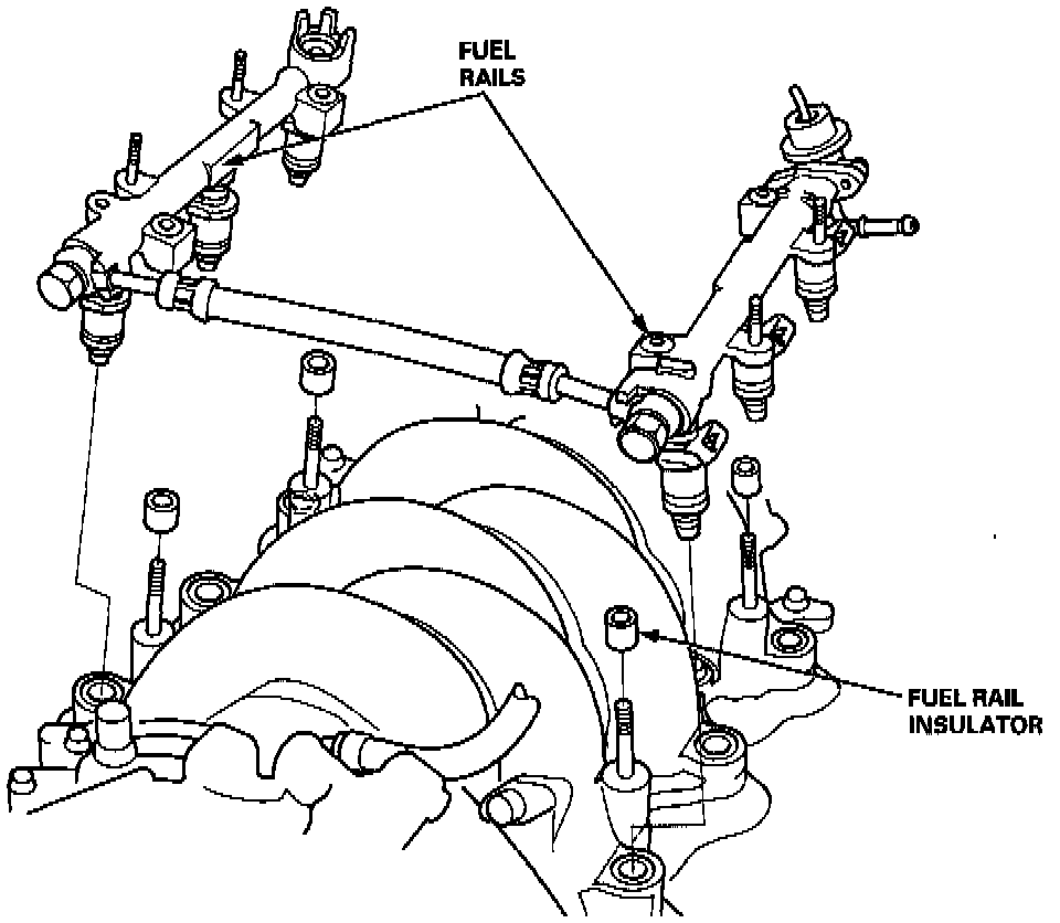 6. Remove the retainer nuts from the fuel rail and harness holder.