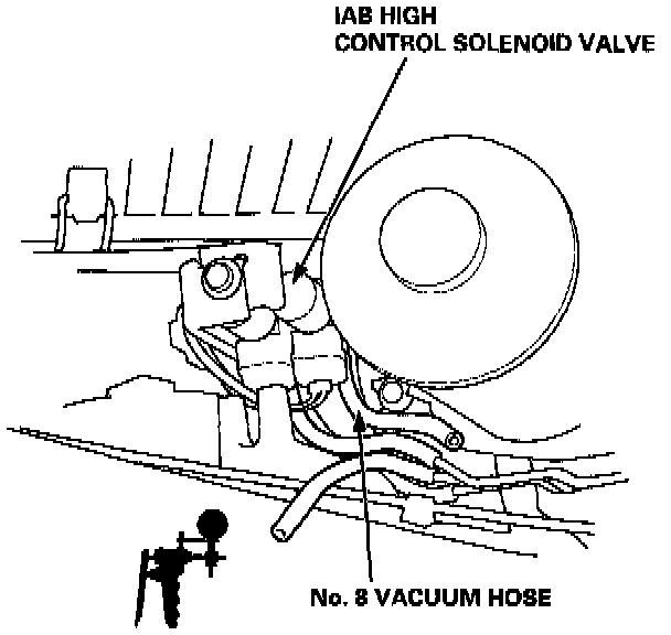 Intake Air Bypass (IAB) High Control Valve1. Disconnect the No. 8 vacuum hose from the vacuum hose manifold, and attach a vacuum pump to the vacuum hose manifold.