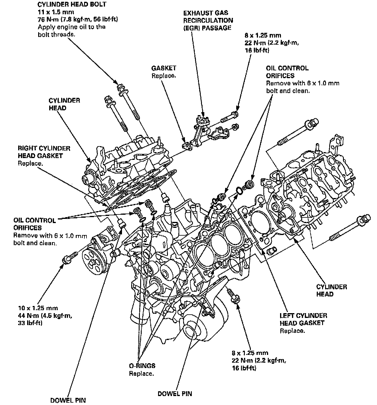 Tighten the 11 x 1.5 mm cap bolts in sequence to 76 n.m. (56 lb. ft.)