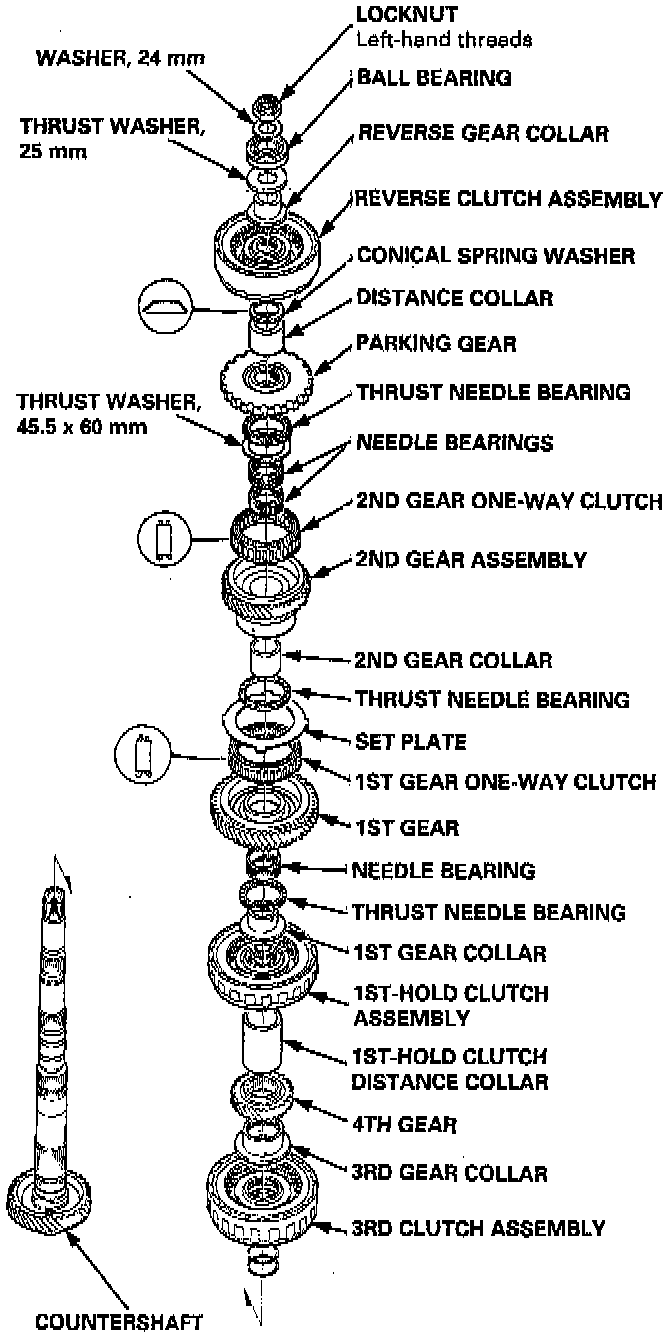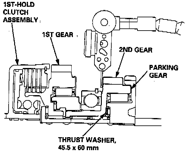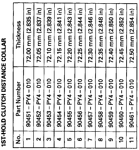 6. After replacing the 1st-hold clutch distance collar make sure that the clearance is within tolerance.