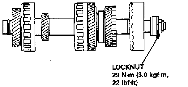 2. Torque the countershaft locknut to 29 Nm (22 ft. lbs.).