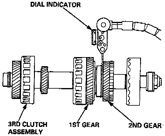 8. Measure 2nd gear axial clearance while pushing the 1st gear towards the reverse clutch assembly.