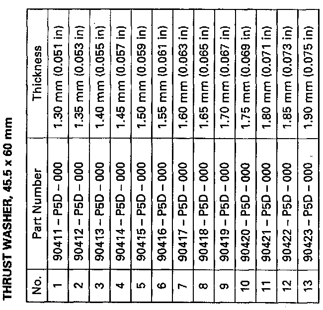 11. After replacing the 45.5 x 60 mm thrust washer make sure that the clearance is within tolerance.