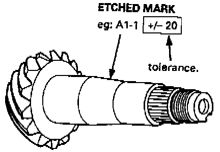 First, calculate the difference in size between the old shim and the new pinion. The last one of the numbers on each pinion is the plus (+) or minus (-) tolerance in thousands of a millimeter. So, a pinion with +20 is 0.02 mm larger and a pinion with - 20 is 0.02 mm smaller.