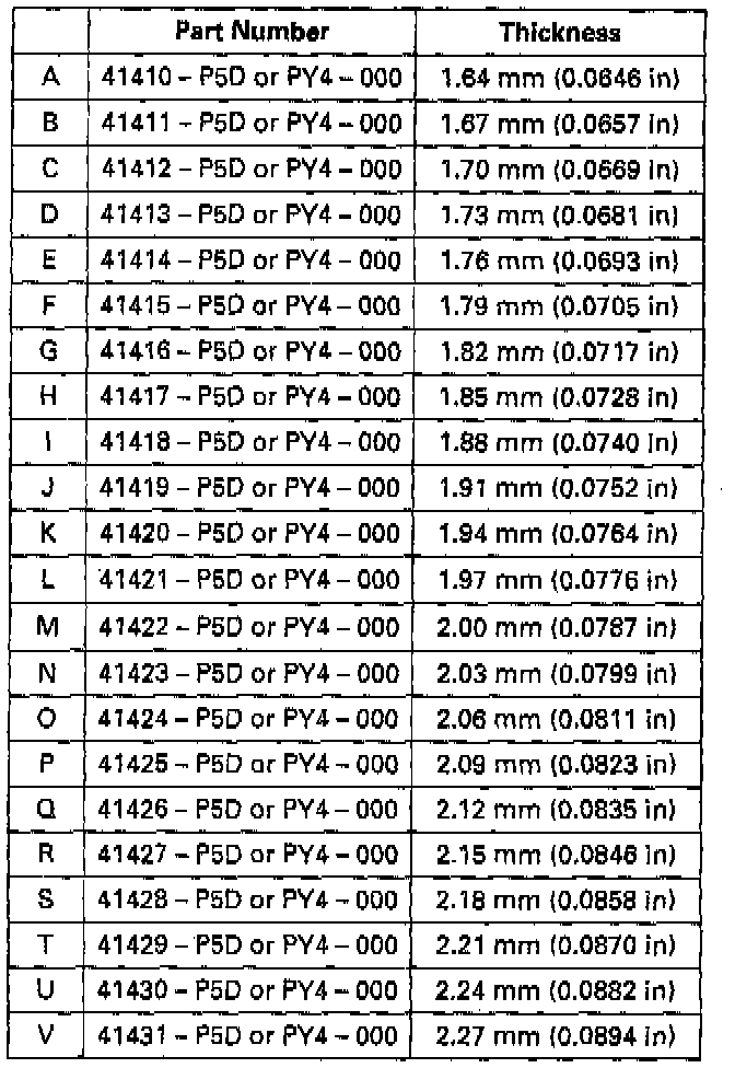 Select the 1.70 mm (0.0669 inch) new shim.
