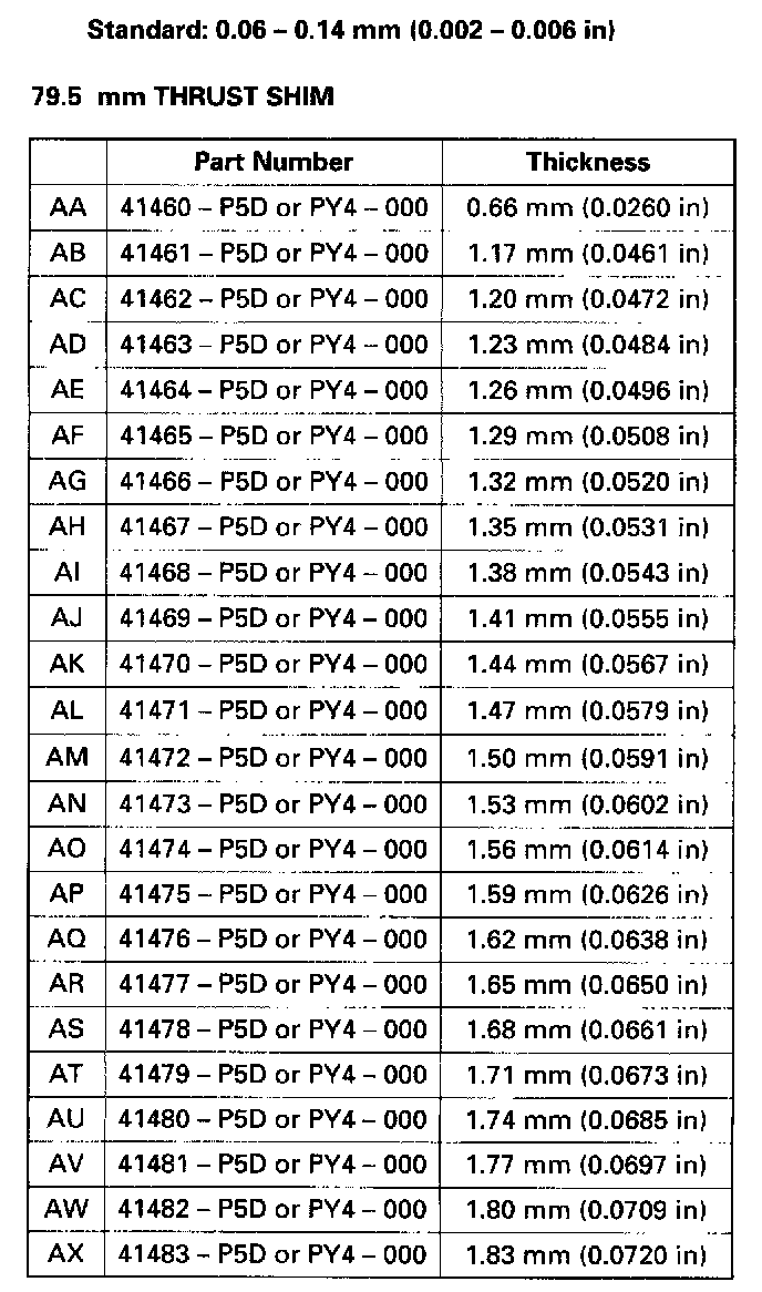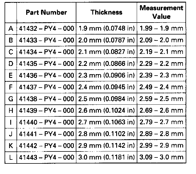 c. Select the 26 mm shim from the following table.