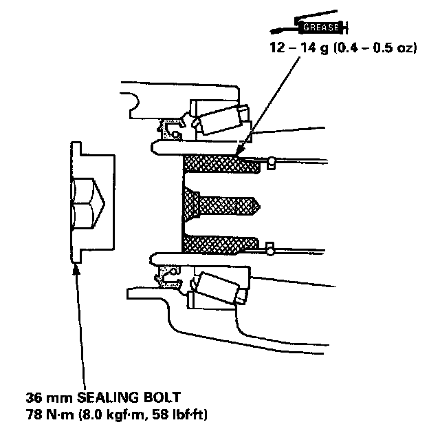 7. Fill the secondary gear with Super High Temperature Urea Grease (P/N 08798 - 9002), then install the 36 mm sealing bolt.