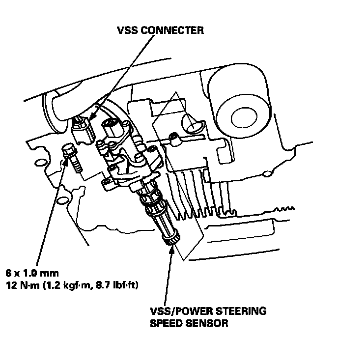 8. Install the vehicle speed sensor (VSS)/power steering speed sensor, then connect the VSS connector.