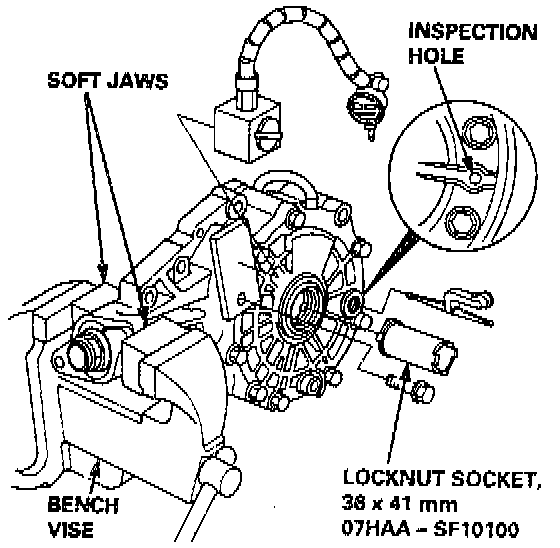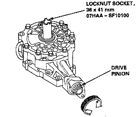 10. Install the special tool as shown, then rotate the drive pinion in both directions so that the ring gear rotate one full turn in both directions. During this operation resistance should be applied to the ring