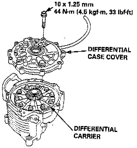 9. Reinstall the differential carrier and the differential case cover, then torque the bolts in a crisscross pattern in several steps.