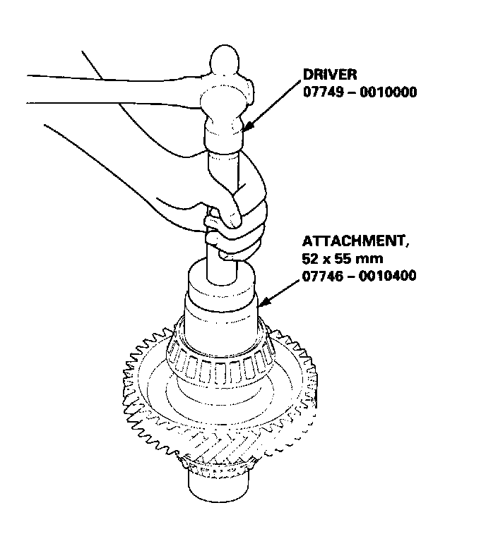 25. Tap the parking gear very lightly to install in the 2nd gear one-way clutch, using the special tool as shown.