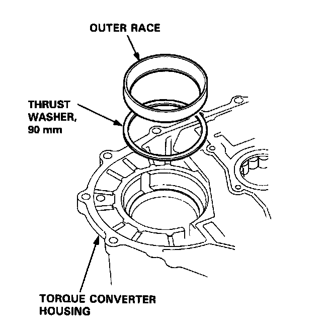 - Check that there is no clearance between the outer race, thrust washer, and torque converter housing.
