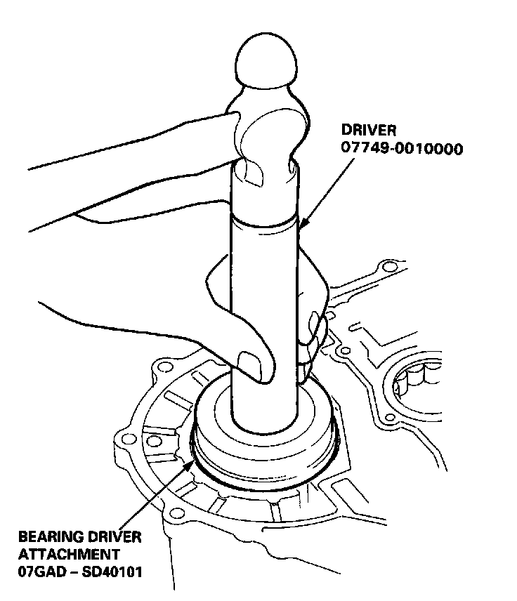 - Check that there is no clearance between the outer race, shim, and transmission housing.