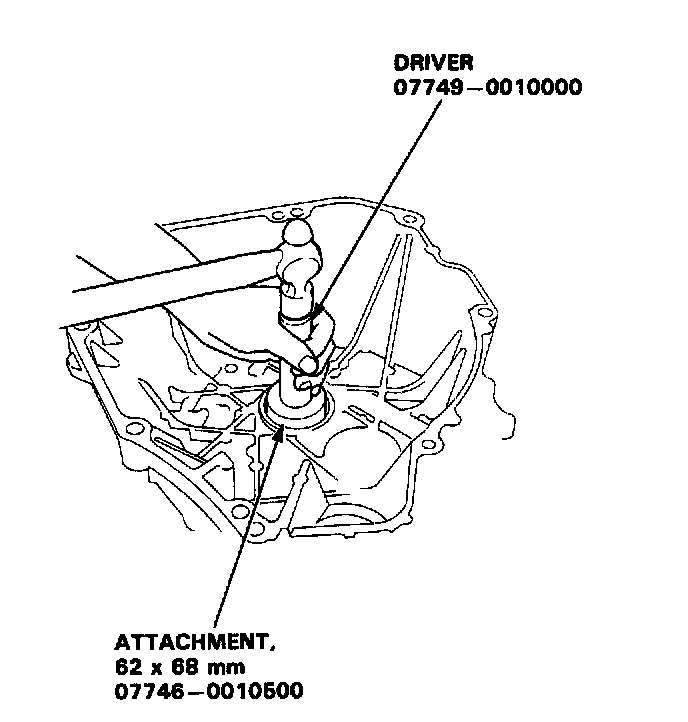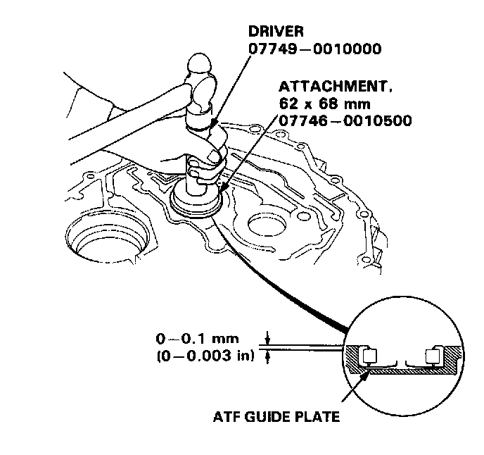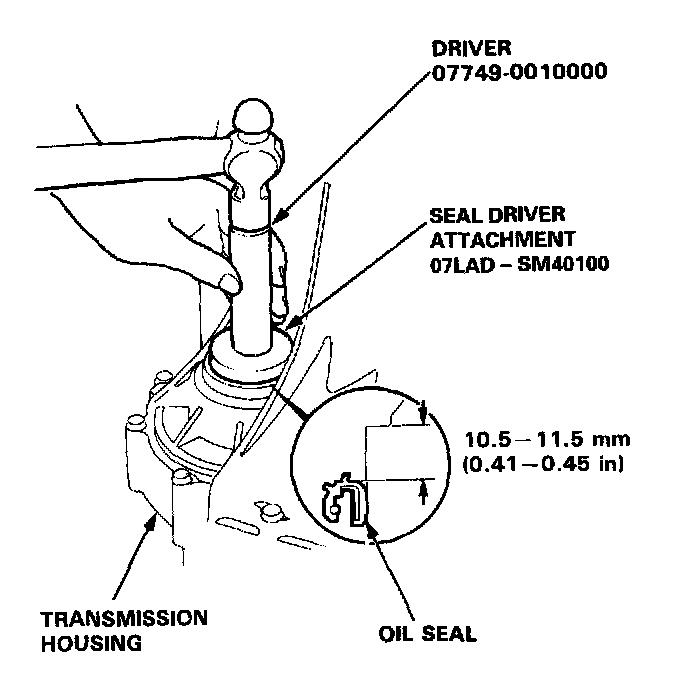 1. Install the oil seal in the transmission housing using the special tool as shown.