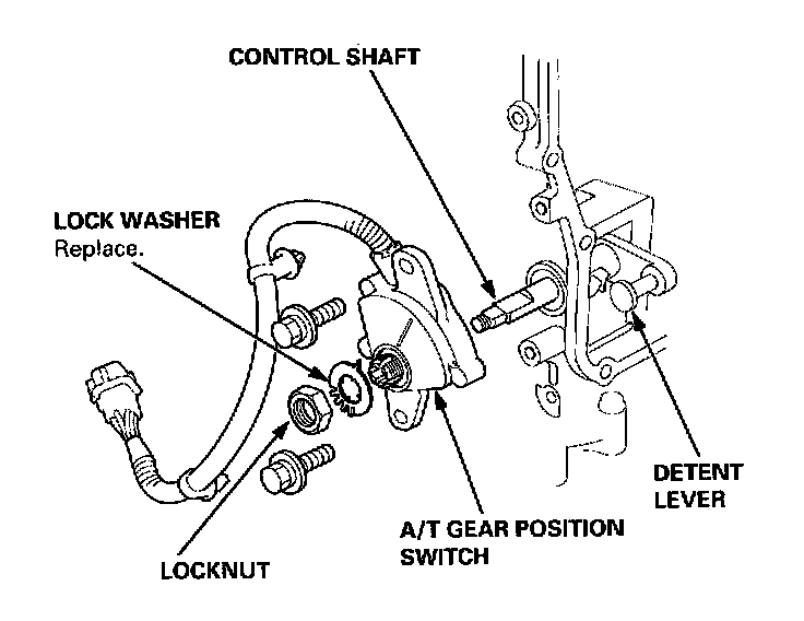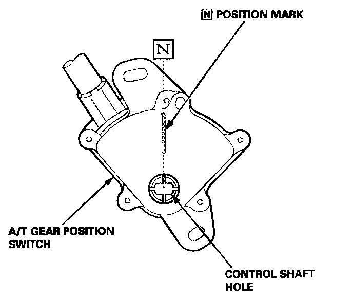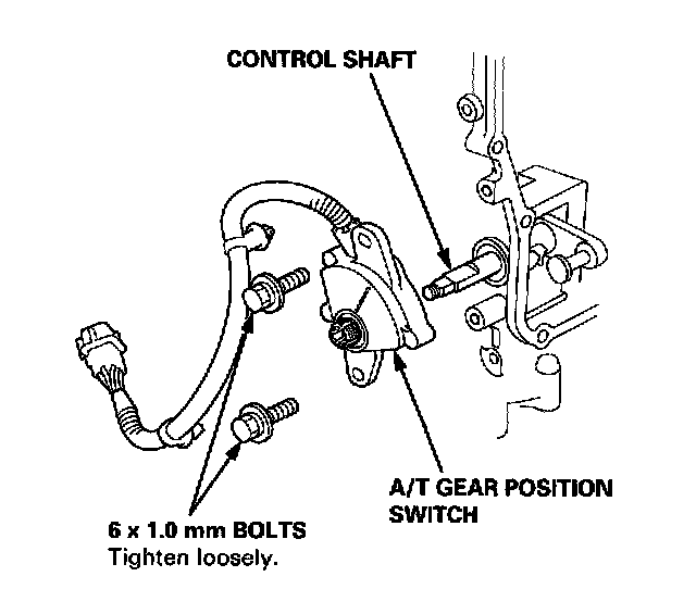 3. Install the A/T gear position switch on the control shaft, then install the bolts loosely.