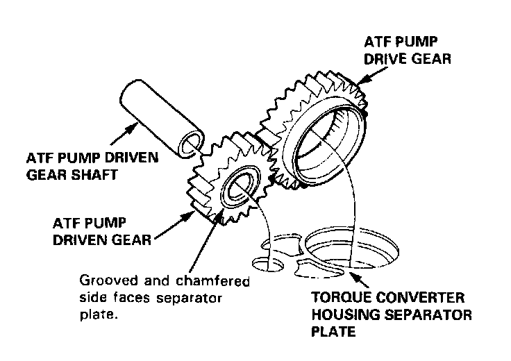 NOTE: Install the ATF pump driven gear with its grooved and chamfered side facing down.