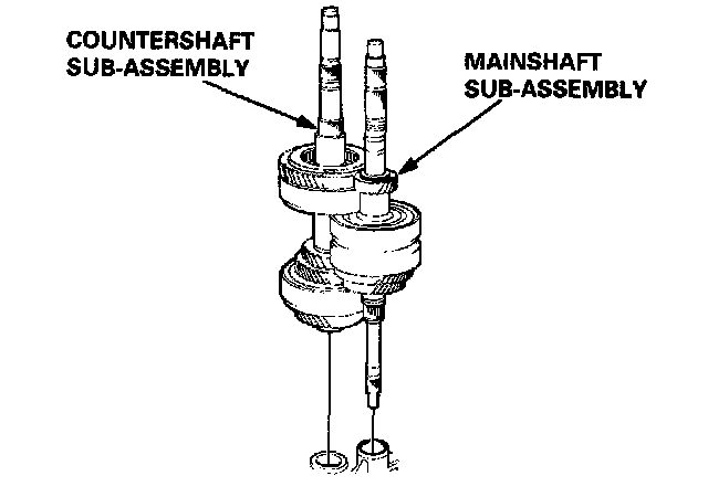 17. Install the mainshaft sub-assembly and the countershaft sub-assembly together in the torque converter housing.