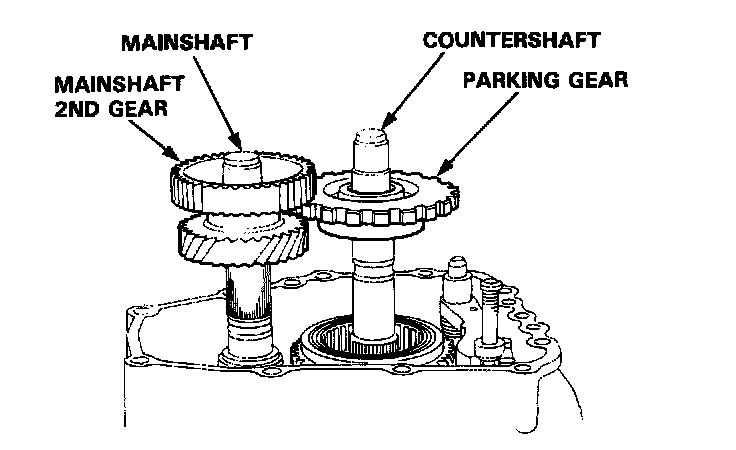 24. Combine the mainshaft 2nd gear with the parking gear, then install them on their respective shafts.