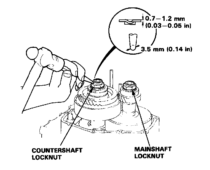37. Stake each locknut into its shaft, using a 3.5 mm (0.14 inch) punch as shown.