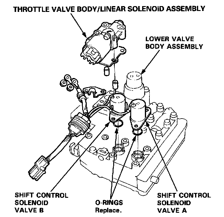 NOTE: Shift control solenoid valve A and B must be replaced as an assembly.