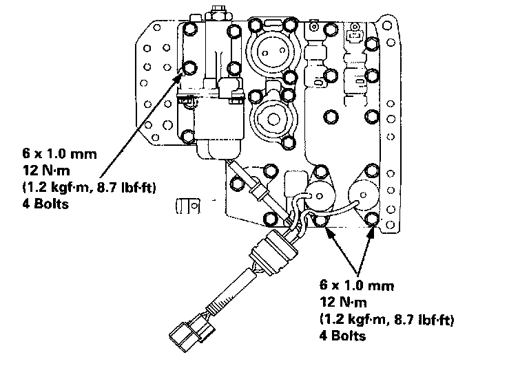 4. Connect the linear solenoid terminal, then install the shift control solenoid valve A, B and linear solenoid/ throttle valve body on the lower valve body.