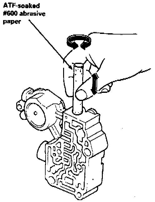 NOTE: This repair is only necessary if one or more of the valves in a valve body do not slide smoothly in their bores. You may use this procedure to free the valves in the valve bodies.1. Soak a sheet of #600 abrasive paper in ATF for about 30 minutes.
