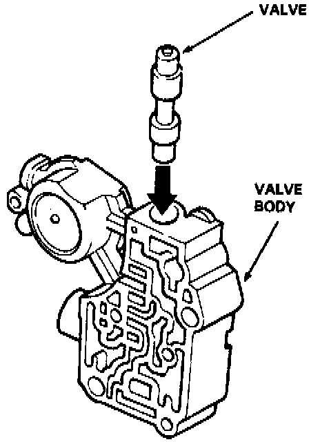 6. Coat the valve with ATF, then drop it into its bore. It should drop to the bottom of the bore under its own weight. If not, repeat step 4, then retest. If the valve still sticks, replace the valve body.