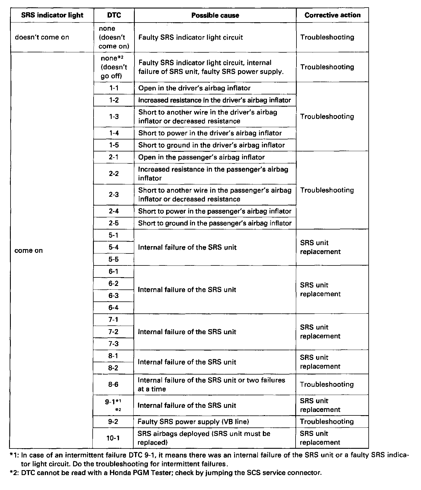DTC List - Air Bag System