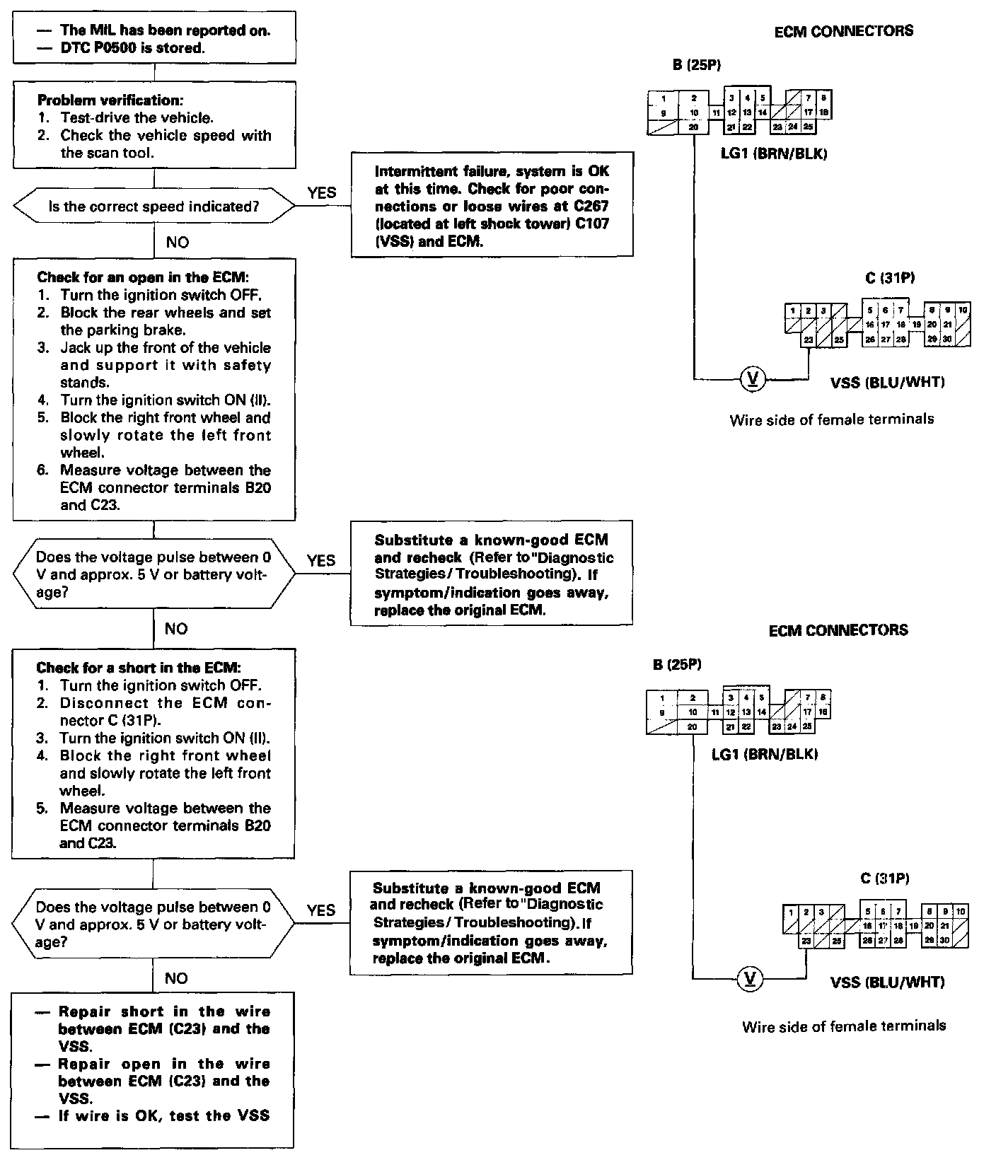 The scan tool indicates Diagnostic Trouble Code (DTC) P0500: