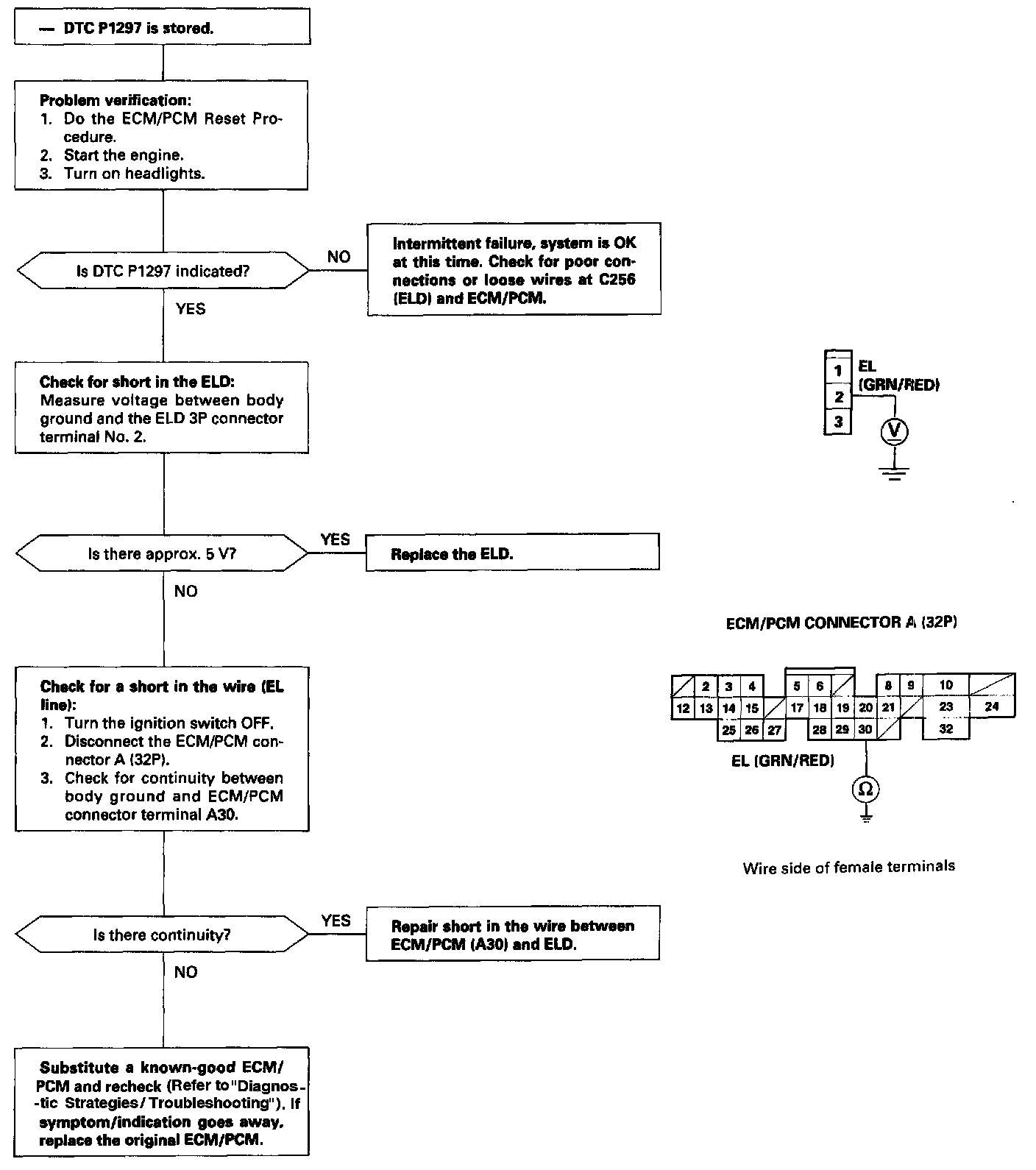 The scan tool indicates Diagnostic Trouble Code (DTC) P1297: