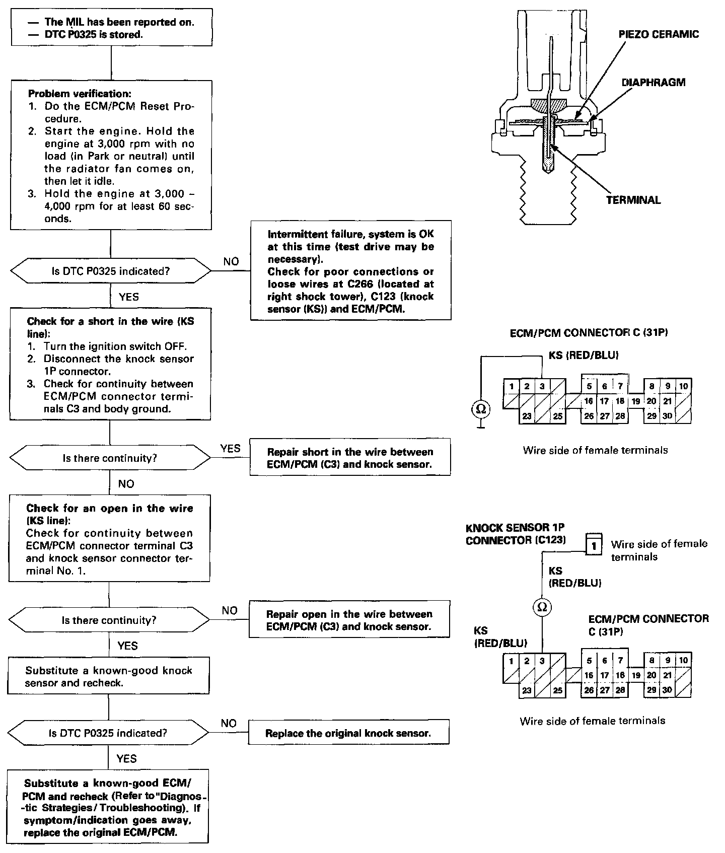 A malfunction in the Knock Sensor circuit (KS).