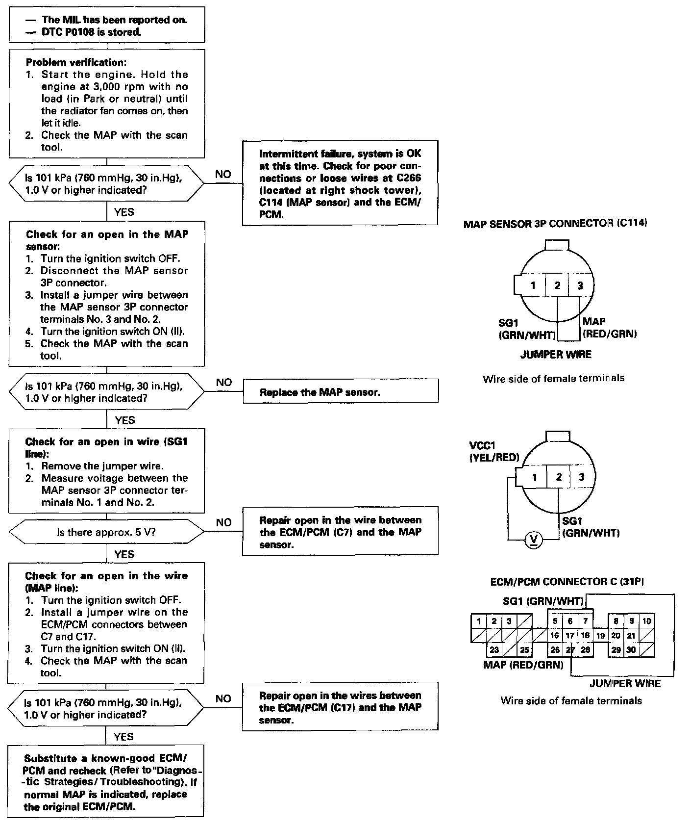 The scan tool indicates Diagnostic Trouble Code (DTC) P0108: