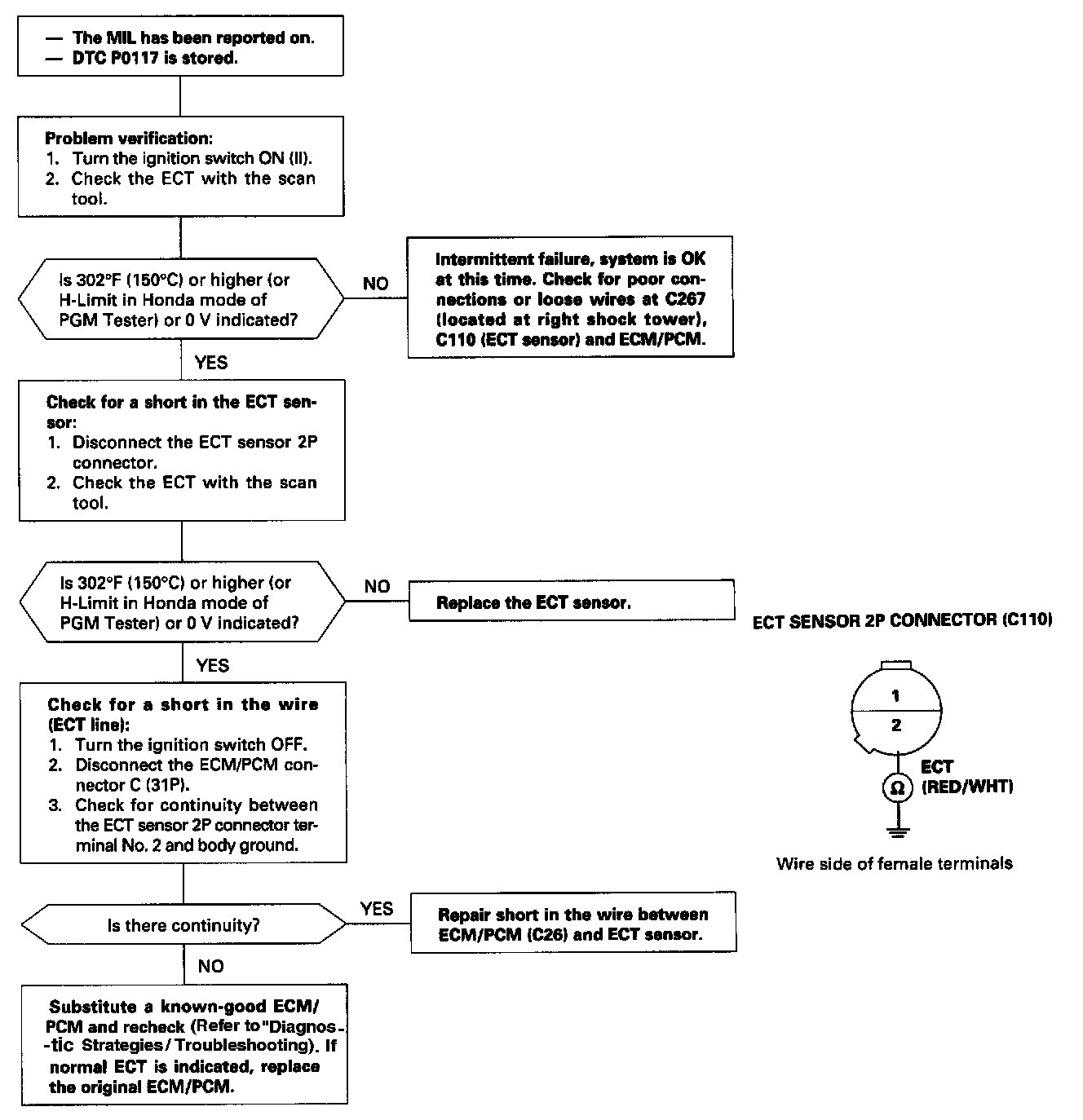 The scan tool indicates Diagnostic Trouble Code (DTC) P0117: