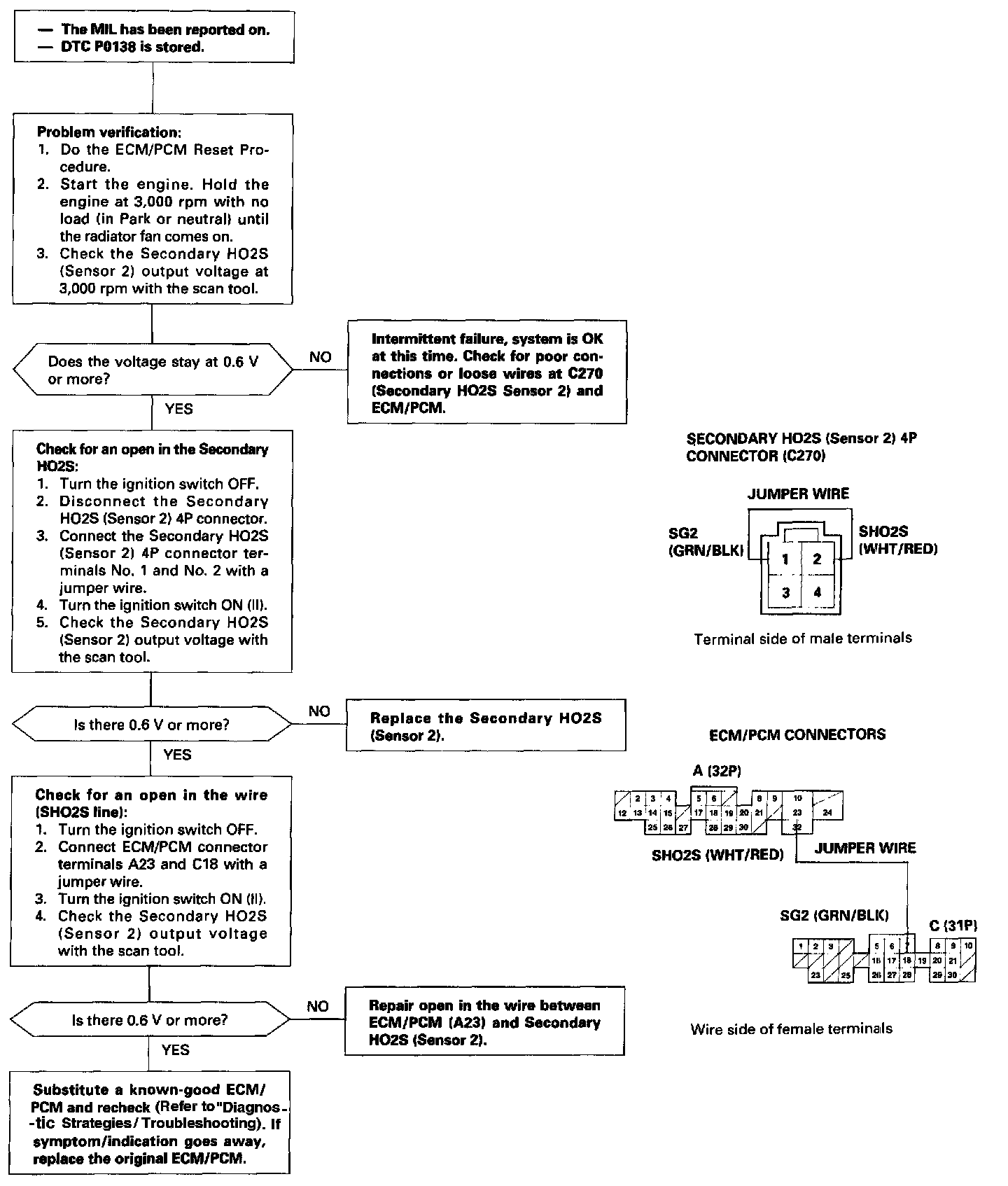 The scan tool indicates Diagnostic Trouble Code (DTC) P0138: