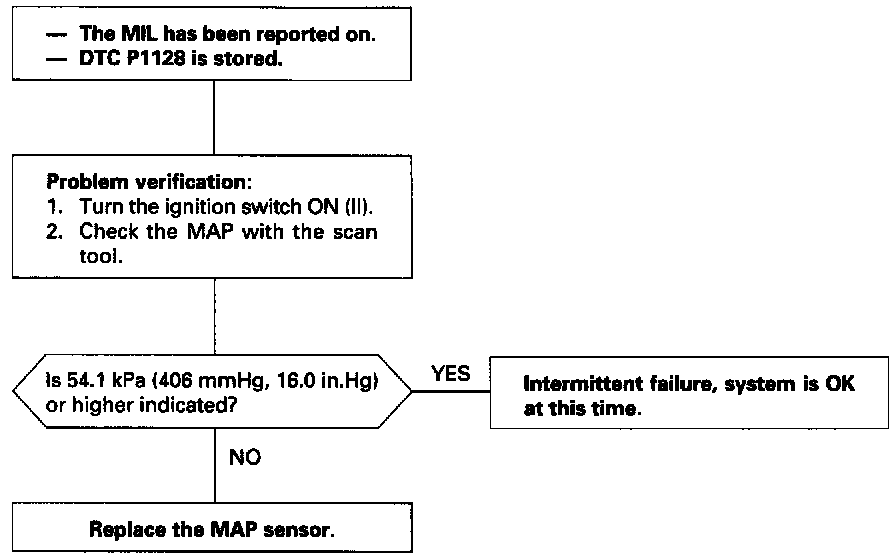 The scan tool indicates Diagnostic Trouble Code (DTC) P1128: