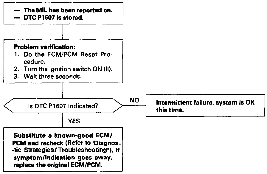 The scan tool indicates Diagnostic Trouble Code (DTC) P1607: