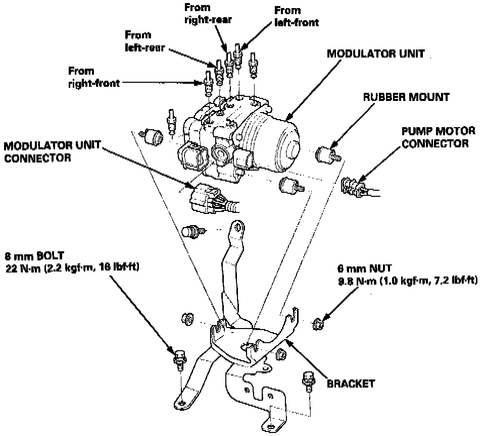 2. Disconnect the brake lines, then remove the modulator unit.