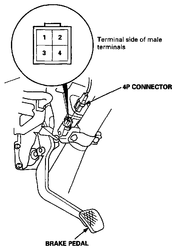 1. Disconnect the 4P connector from the switch.2. Remove the brake switch.