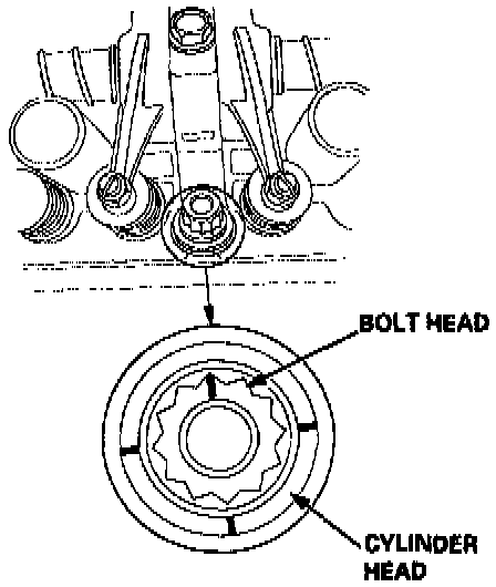 2. Mark the bolt head and the cylinder head as shown.