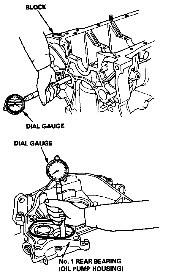 8. Remove the crankshaft, the pistons and the other parts from the block, then clean the balancer shaft journal bearings in the block and the oil pump housing with a clean shop towel.
