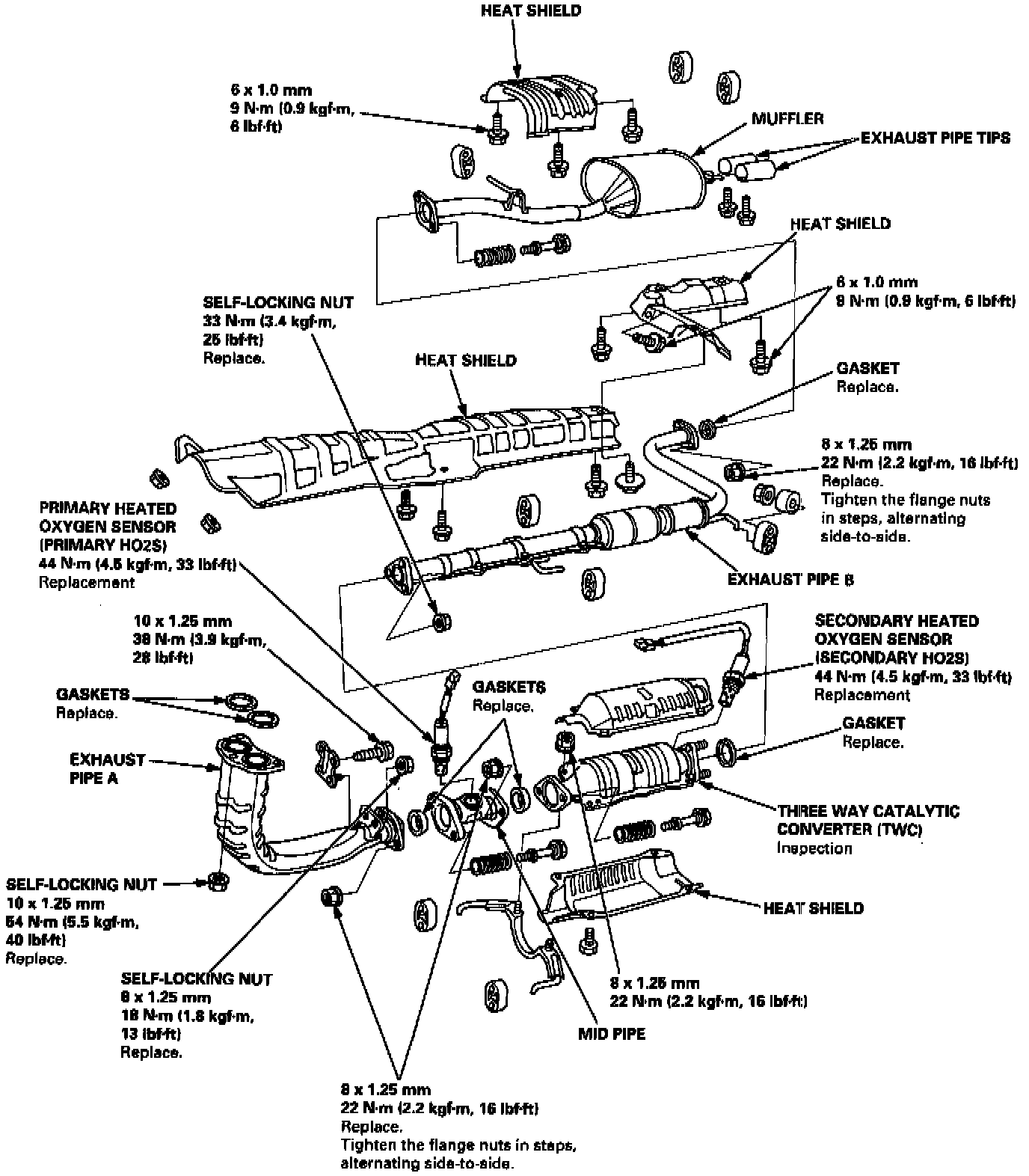 Use new gaskets and self-locking nuts when reassembling.