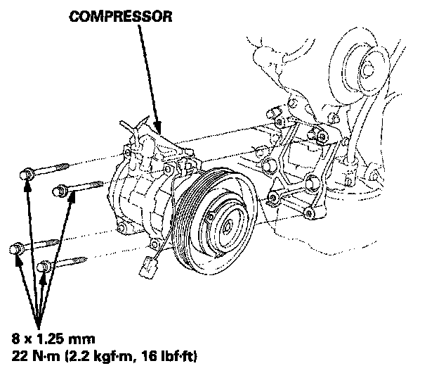 9. If necessary, remove the mounting bolts, mounting nuts and the compressor bracket.