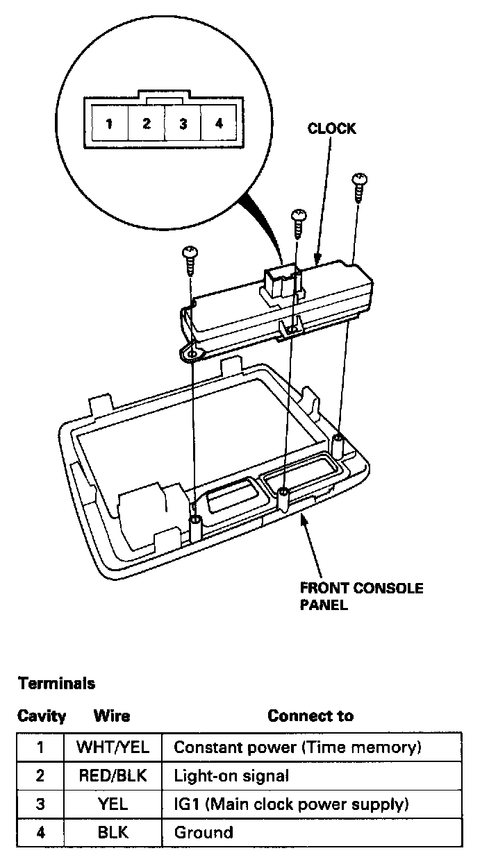 Disconnect the 4P connector from the clock.