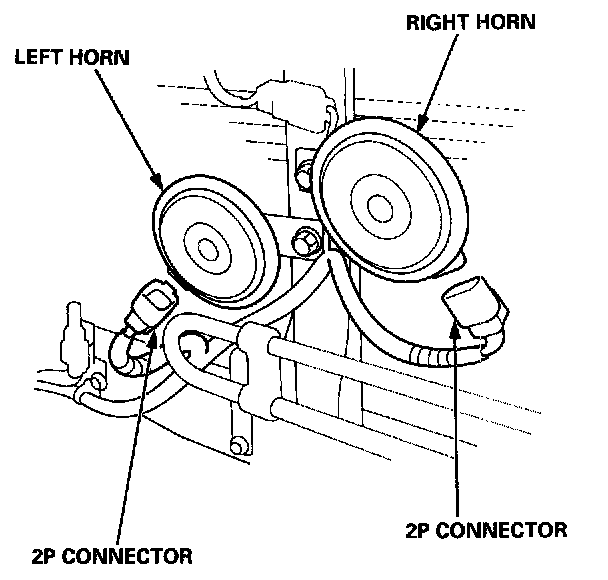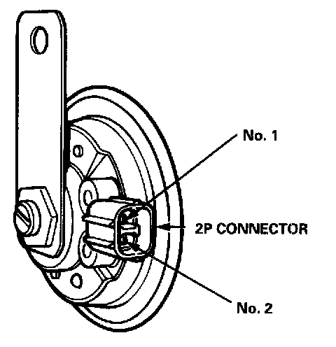 by connecting battery power to one terminal and grounding the other. The horn should sound.