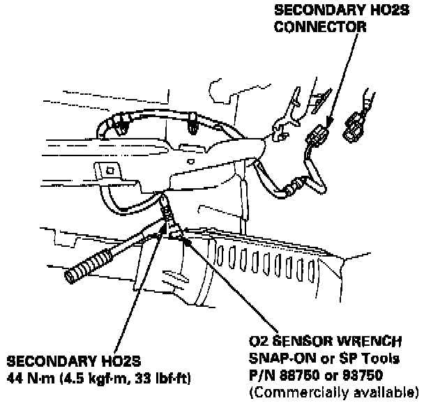 a. Disconnect the secondary H02S connector, and remove the harness clamps, then remove the secondary H02S.