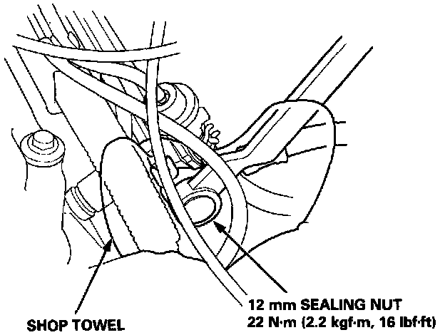 NOTE: Replace the washers whenever the 12 mm sealing nut is loosened or removed.