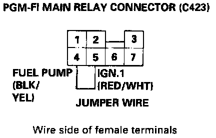 3. Connect the PGM-FI main relay 7P connector terminals No.4 and No.5 with a jumper wire.