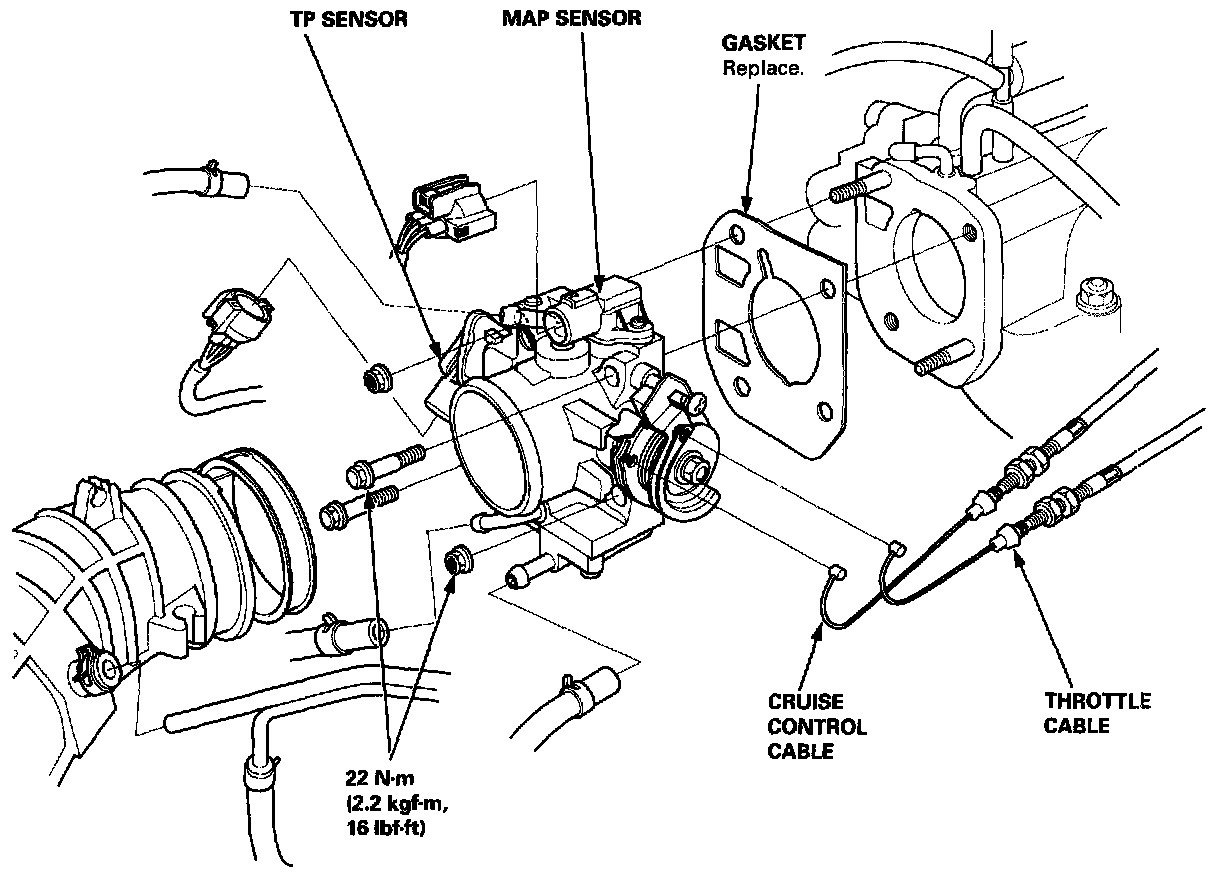 After reassembly, adjust the throttle cable, and cruise control cable.