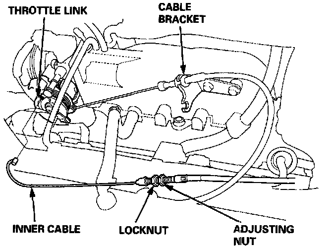 Installation1. Open the throttle valve fully, then install the throttle cable in the throttle linkage, and install the cable housing in the cable bracket.